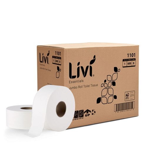 Toilet Tissue Essentials 1 Ply Roll Jumbo White 600m